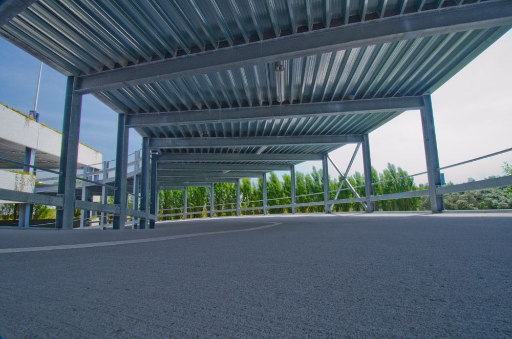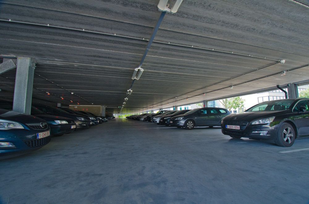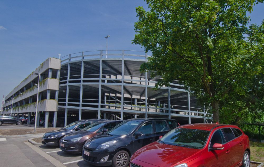 De 530 plaatsen tellende garage is voorzien van een parkeermanagementsysteem zodat men op de half ronde hellingbaan al kan zien op welk niveau er nog plaatsen zijn.