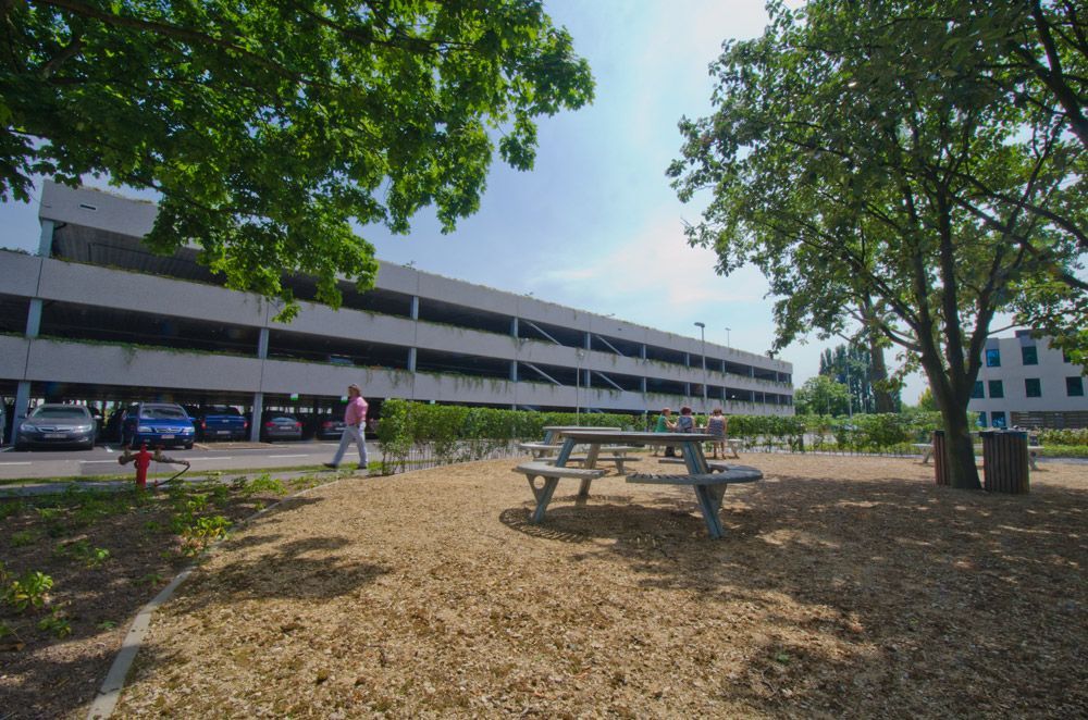 Voor haar groeiende aantal personeelsleden heeft DI in 2012 een parkeergarage laten bouwen die is voorzien van een betonnen gevel met bloembakken. De Hedera klimop zal na een paar jaar de betonnen geveldelen hebben bedekt onder een permanent groen tapijt.